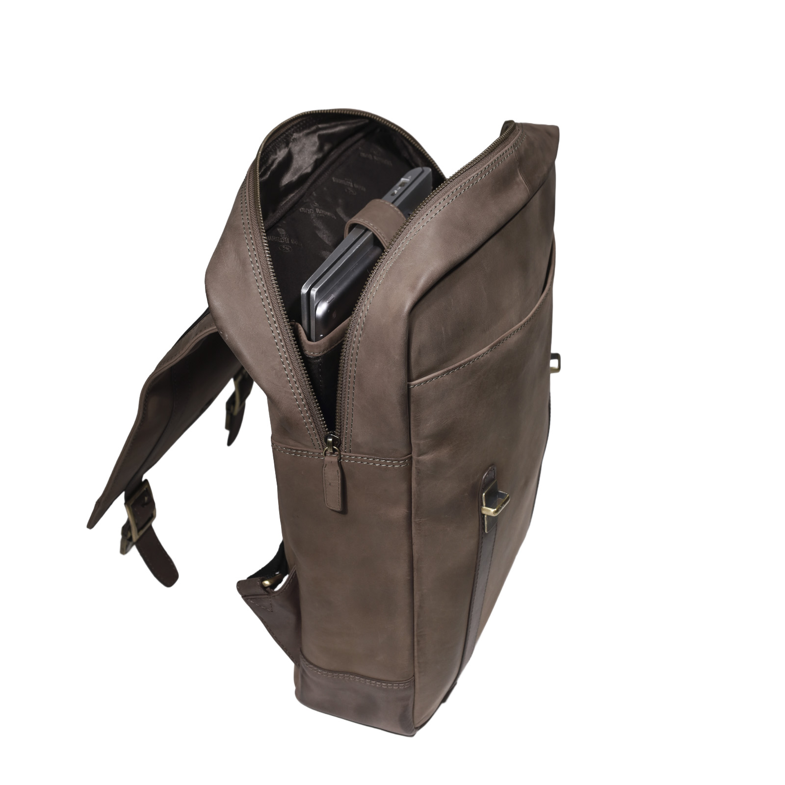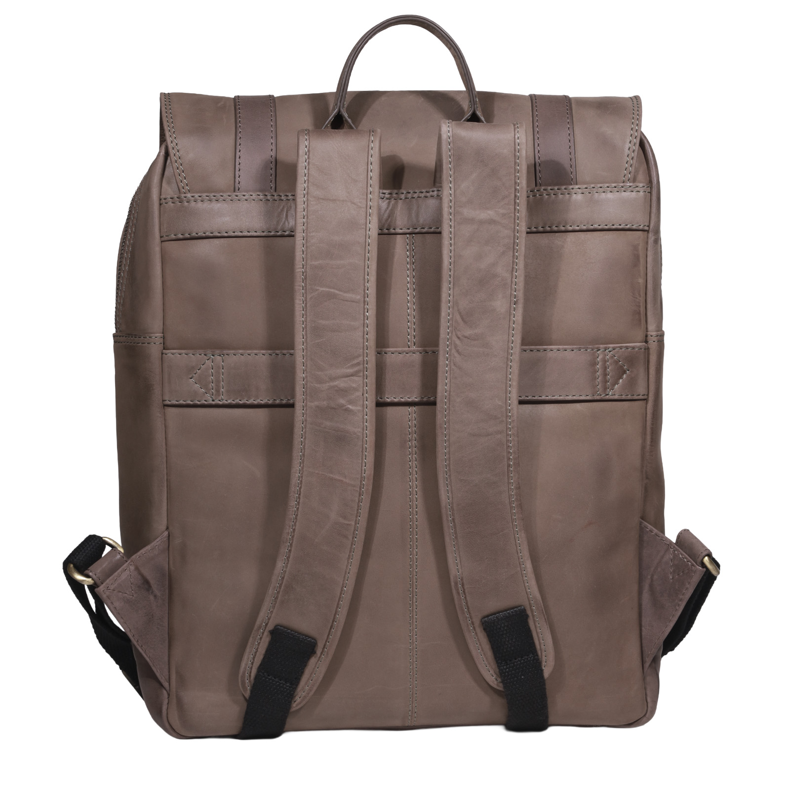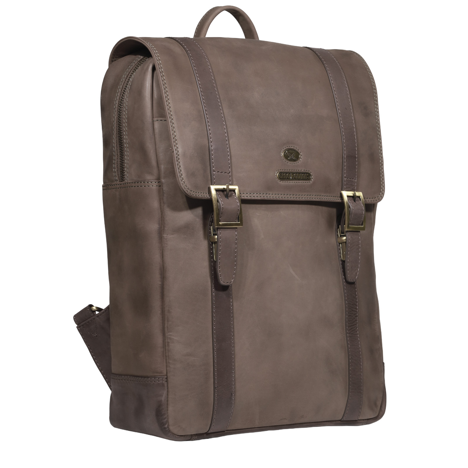 MOCHILA DE CUERO CON TAPA, DOS CORREAS CON CERRADURAS TIP TOP