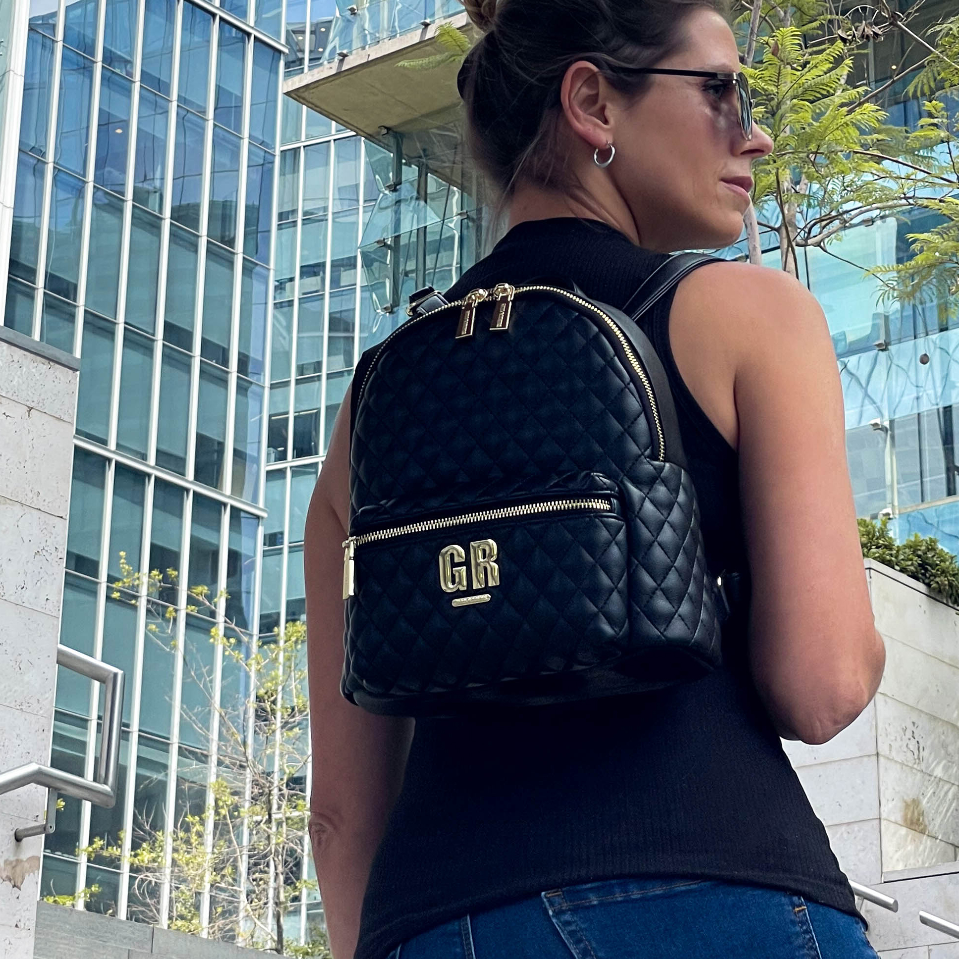 - Mochila confeccionada en eco-cuero semi opaco, con costuras en rombos