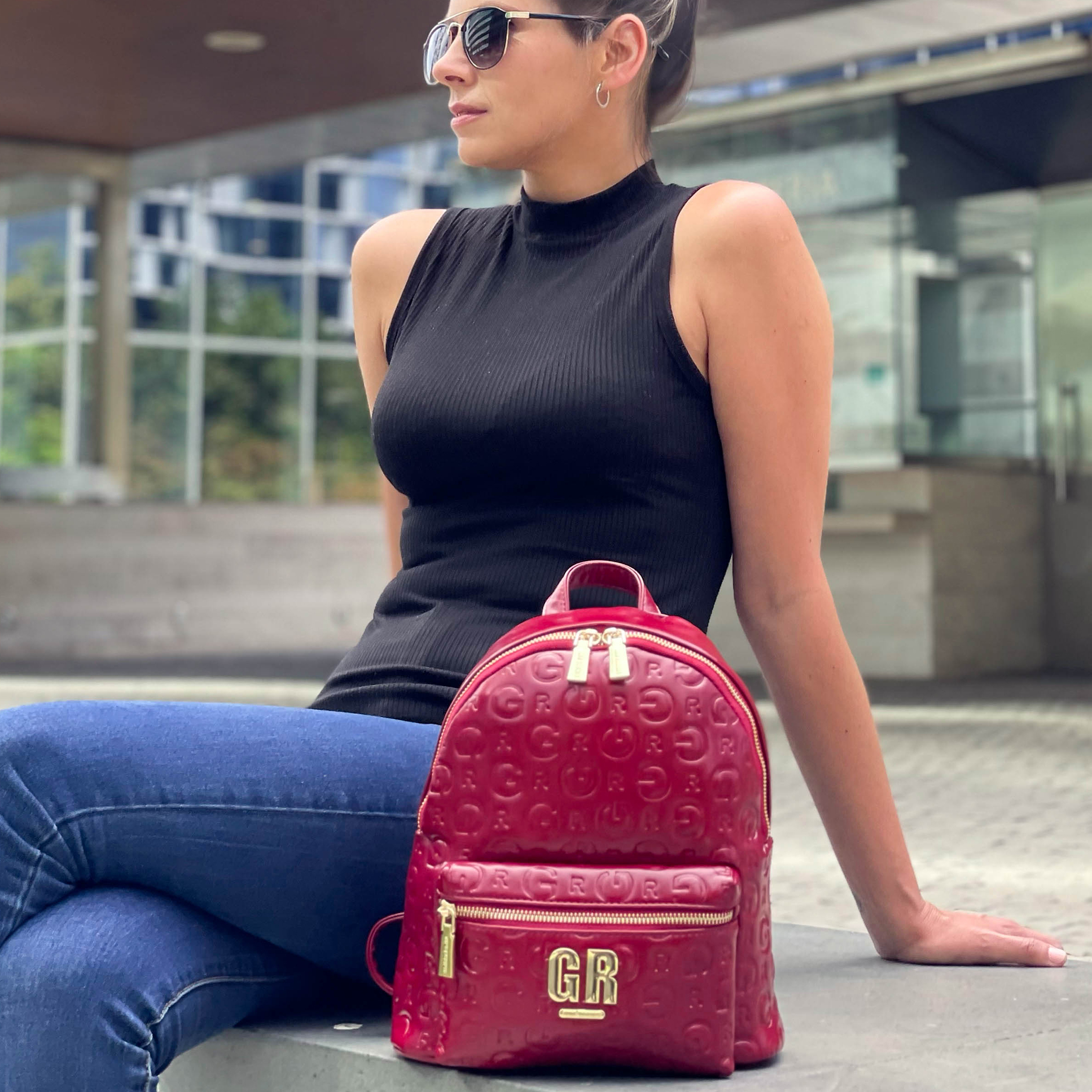 - Mochila confeccionada en eco-cuero brillante, con grabado bajo relieve (G/R)