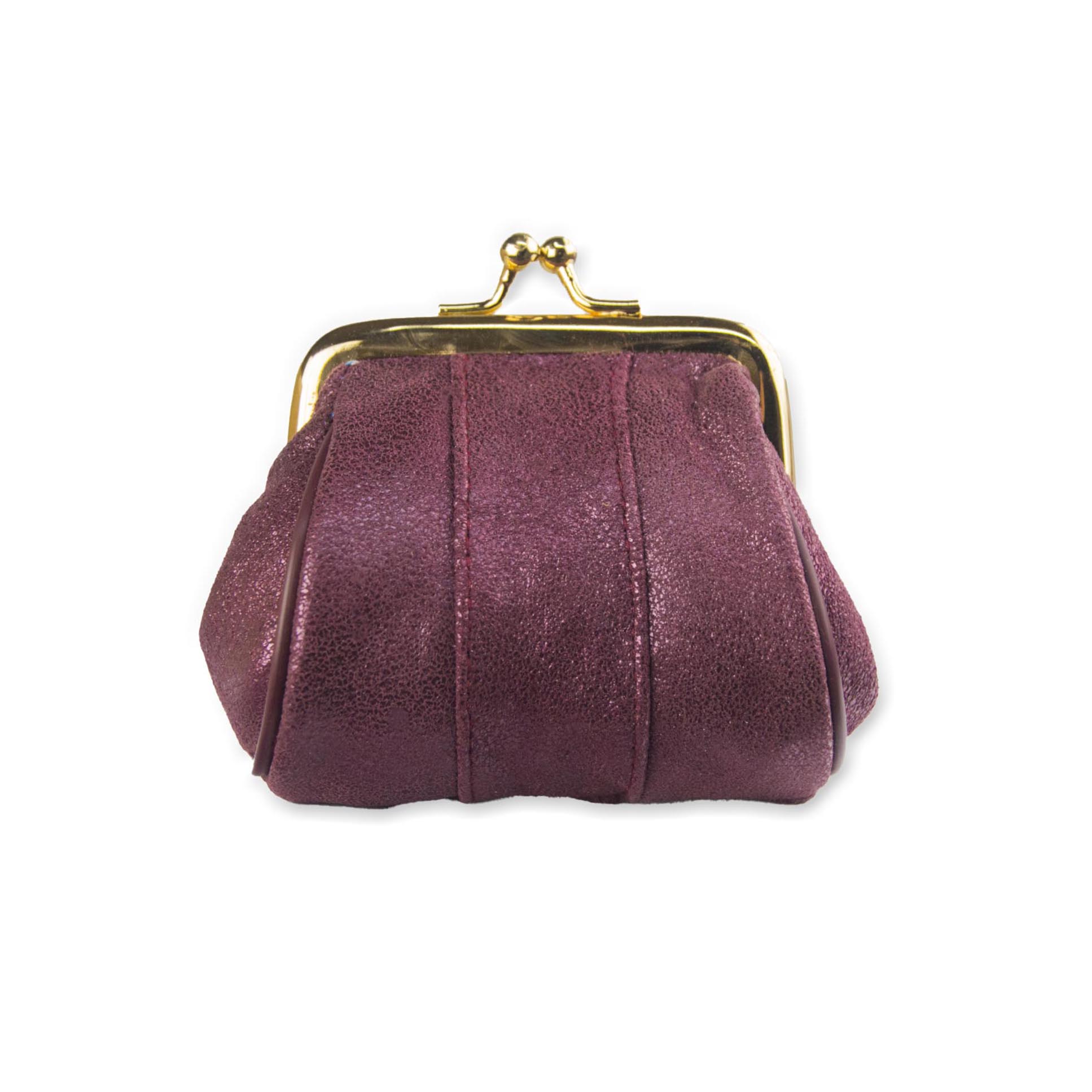 MONEDERO DE CUERO CON MARCO METÁLICO DORADO Y DOS DIVISIONES INTERIORES.