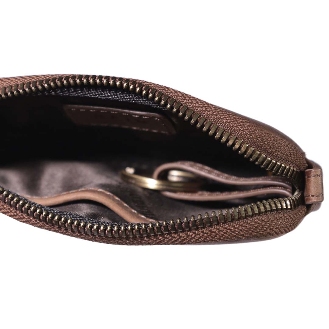 - Monedero confeccionado 100% en cuero graso, con bordes pulidos.