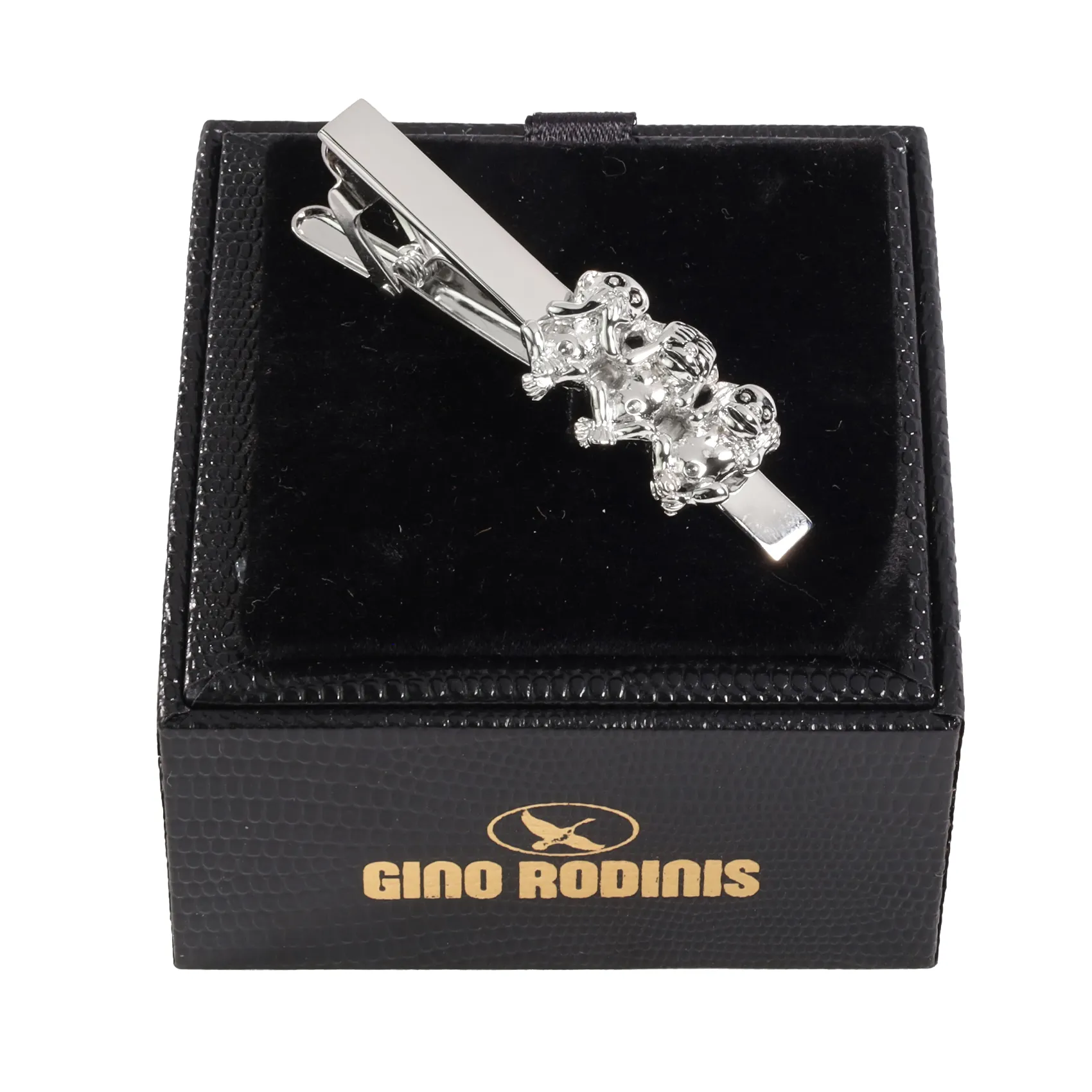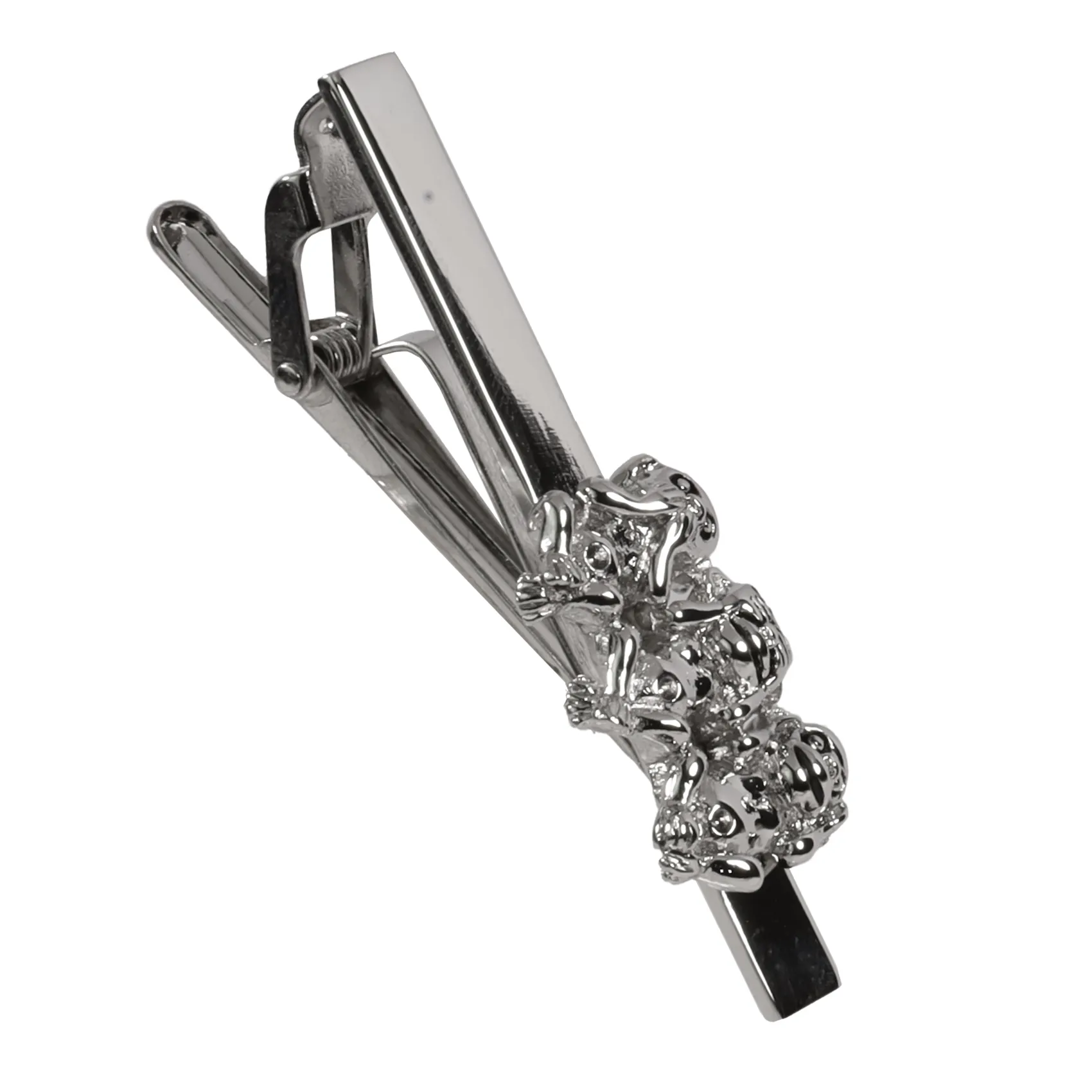 PASADOR DE CORBATA DE METAL, DISEÑO DE TRES MONOS SABIOS EN COLOR PLATEADO