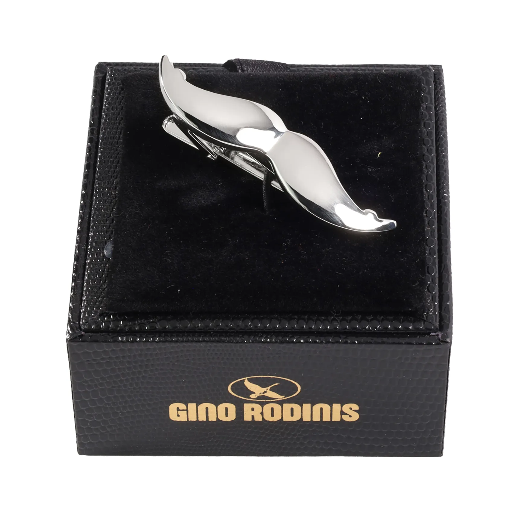 PASADOR DE CORBATA DE METAL, DISEÑO DE BIGOTE HIPSTER PLATEADO