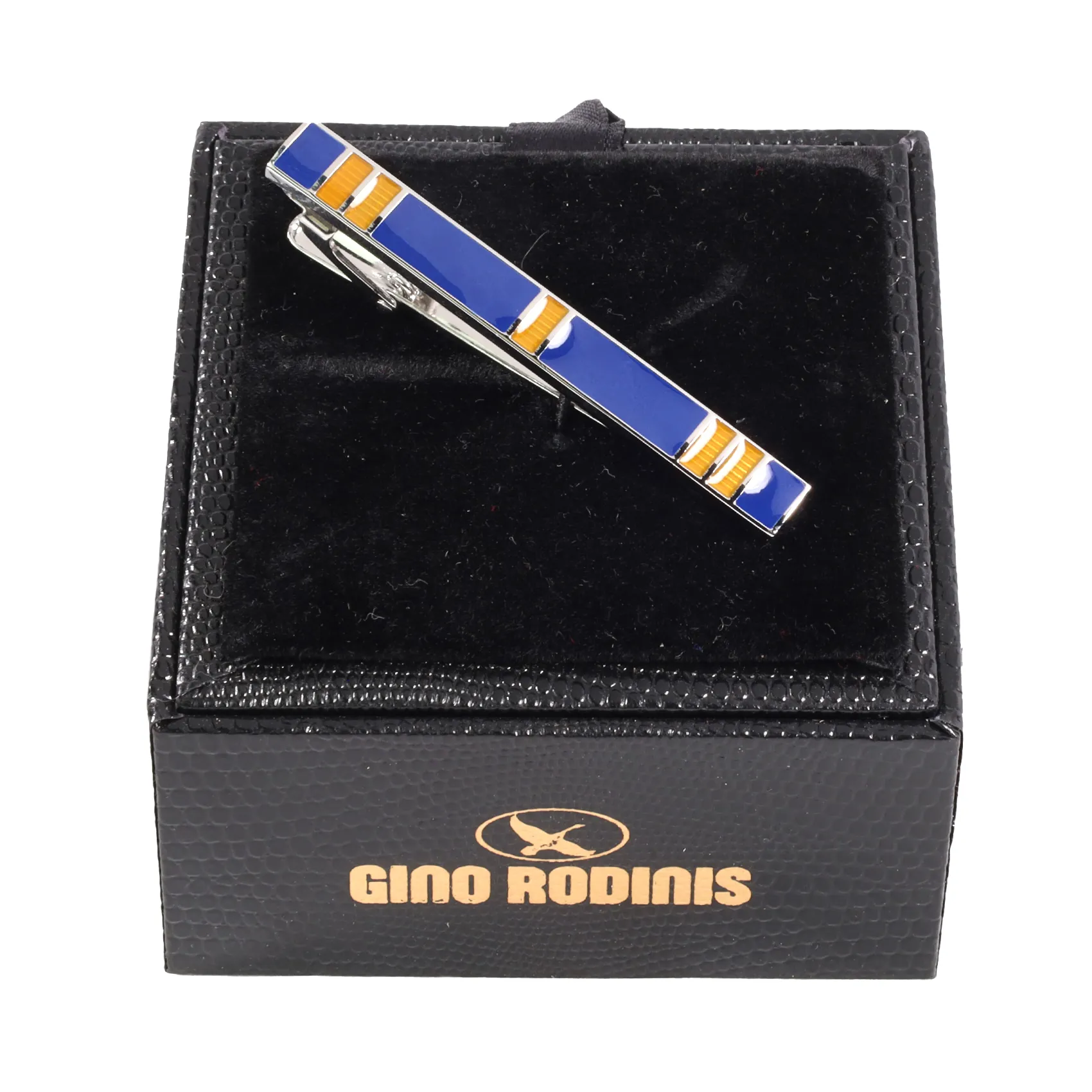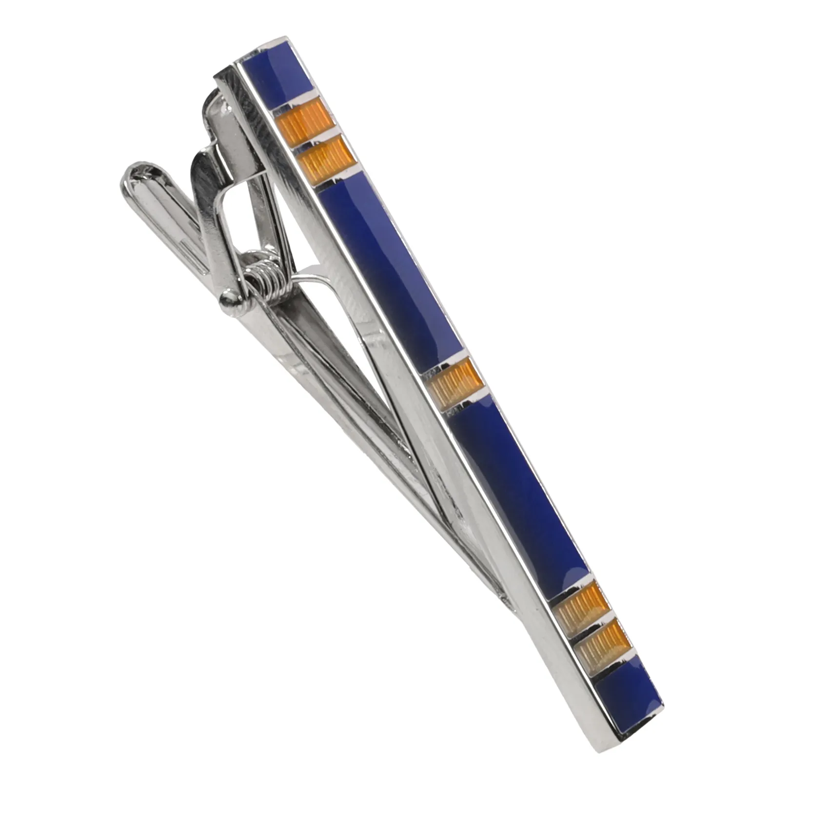 PASADOR DE CORBATA DE METAL, DISEÑO DE BARRA LISA A 2 COLORES AZUL Y AMARILLO ESMALTADOS