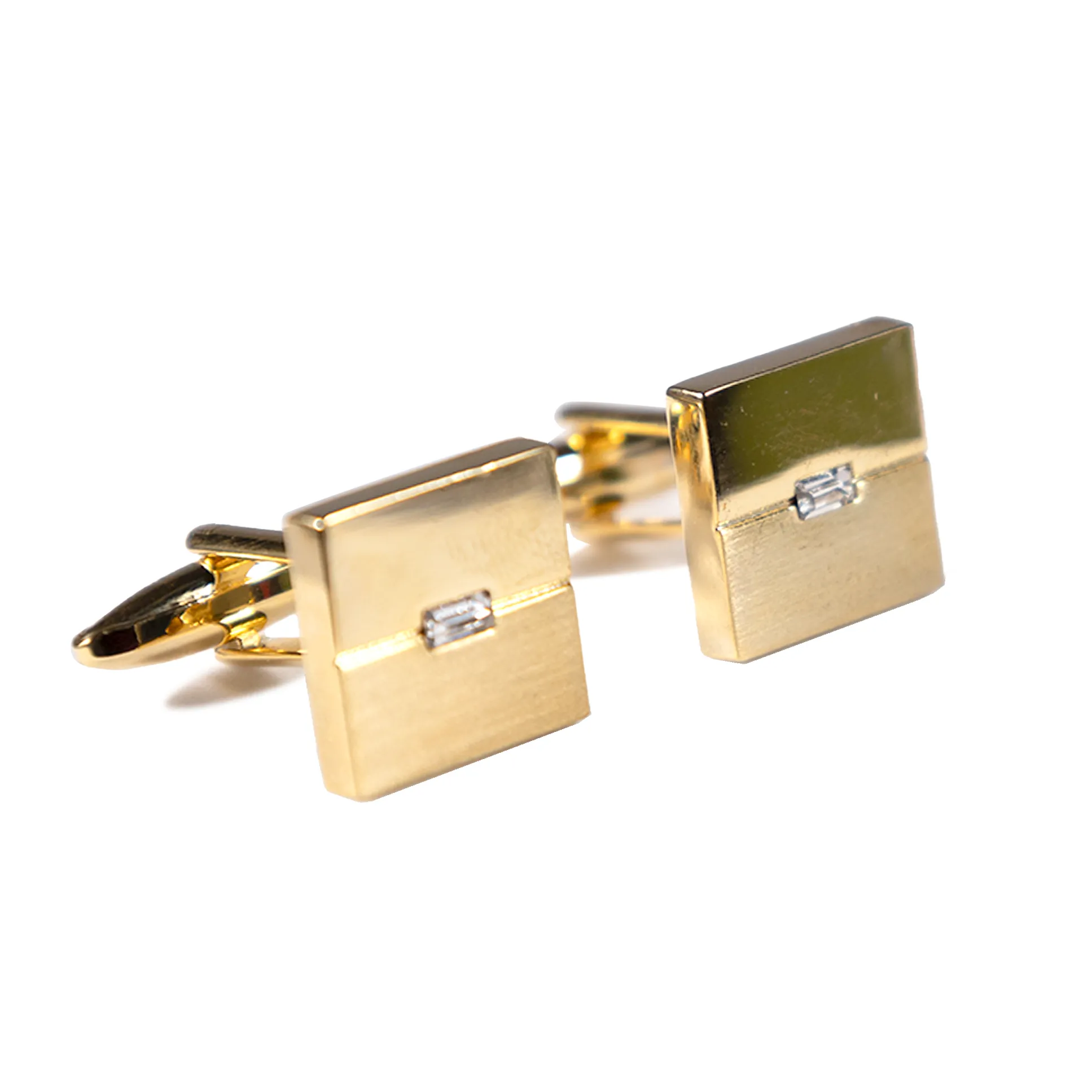 - Diseño del conjunto: Piezas doradas de caras lisas, con un ranurado central y un mini circón