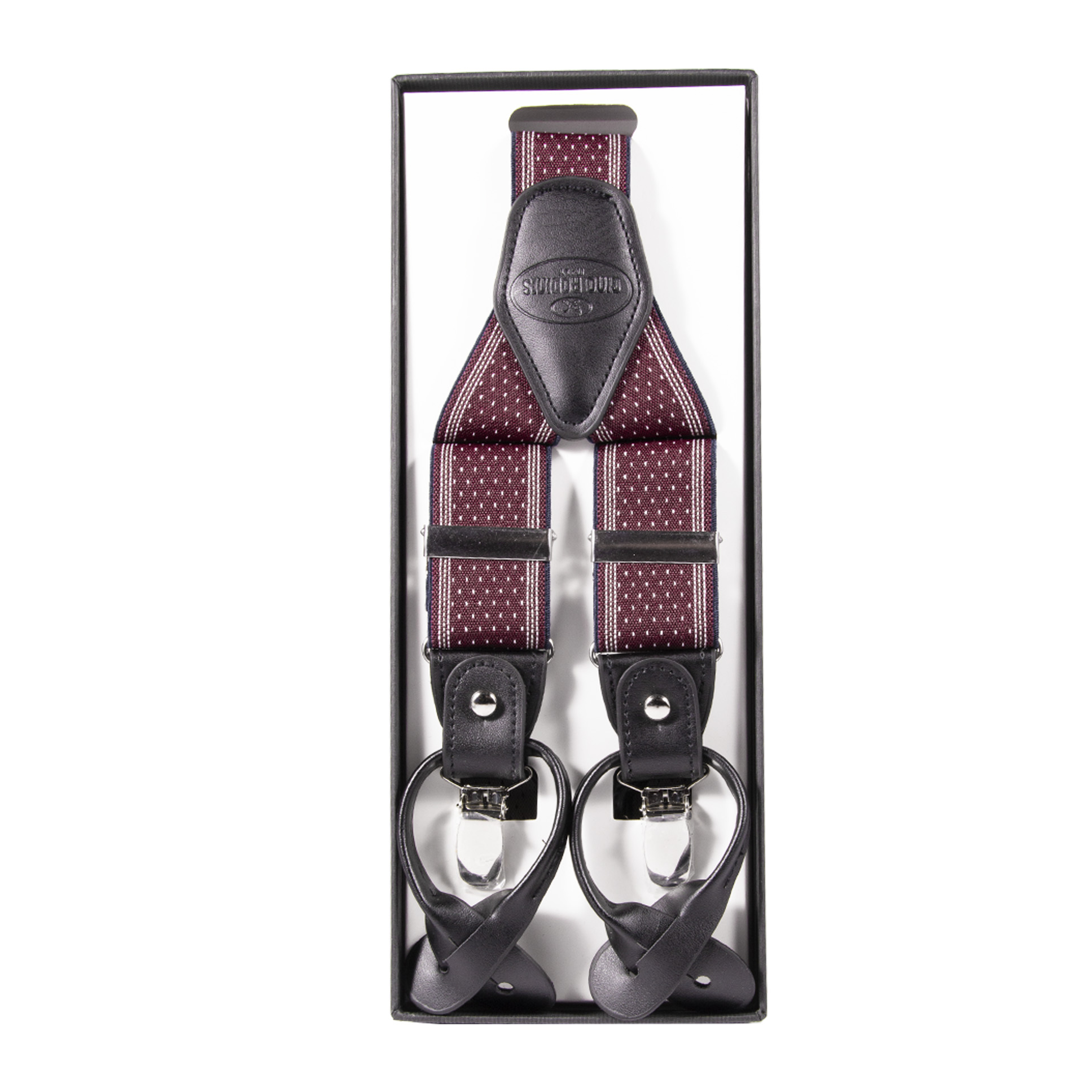 SUSPENSOR ELASTICADO COLOR BURDEO CON PUNTOS Y PESPUNTES BLANCOS