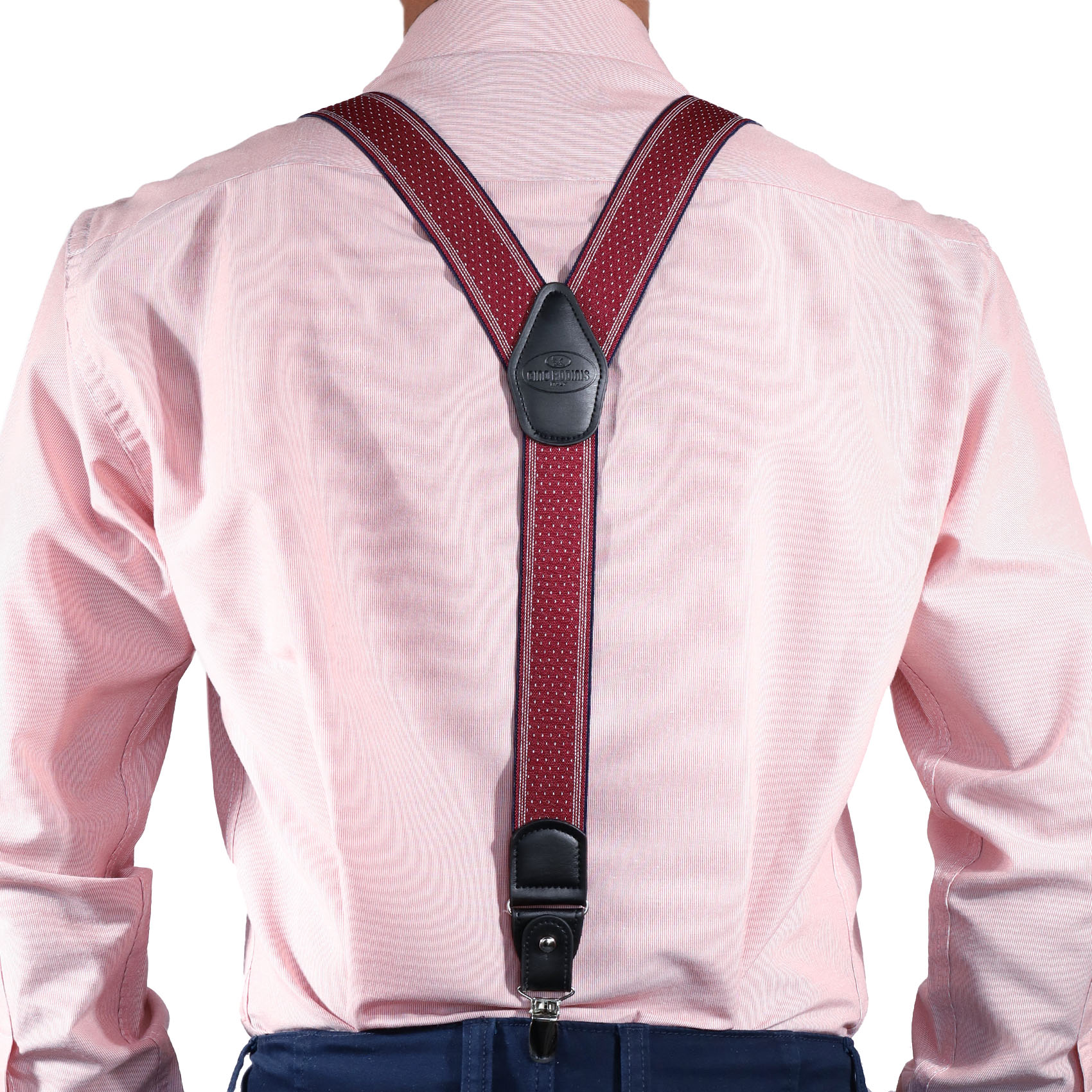 Suspensor Burdeo con rayas y pespuntes blancos | SP011