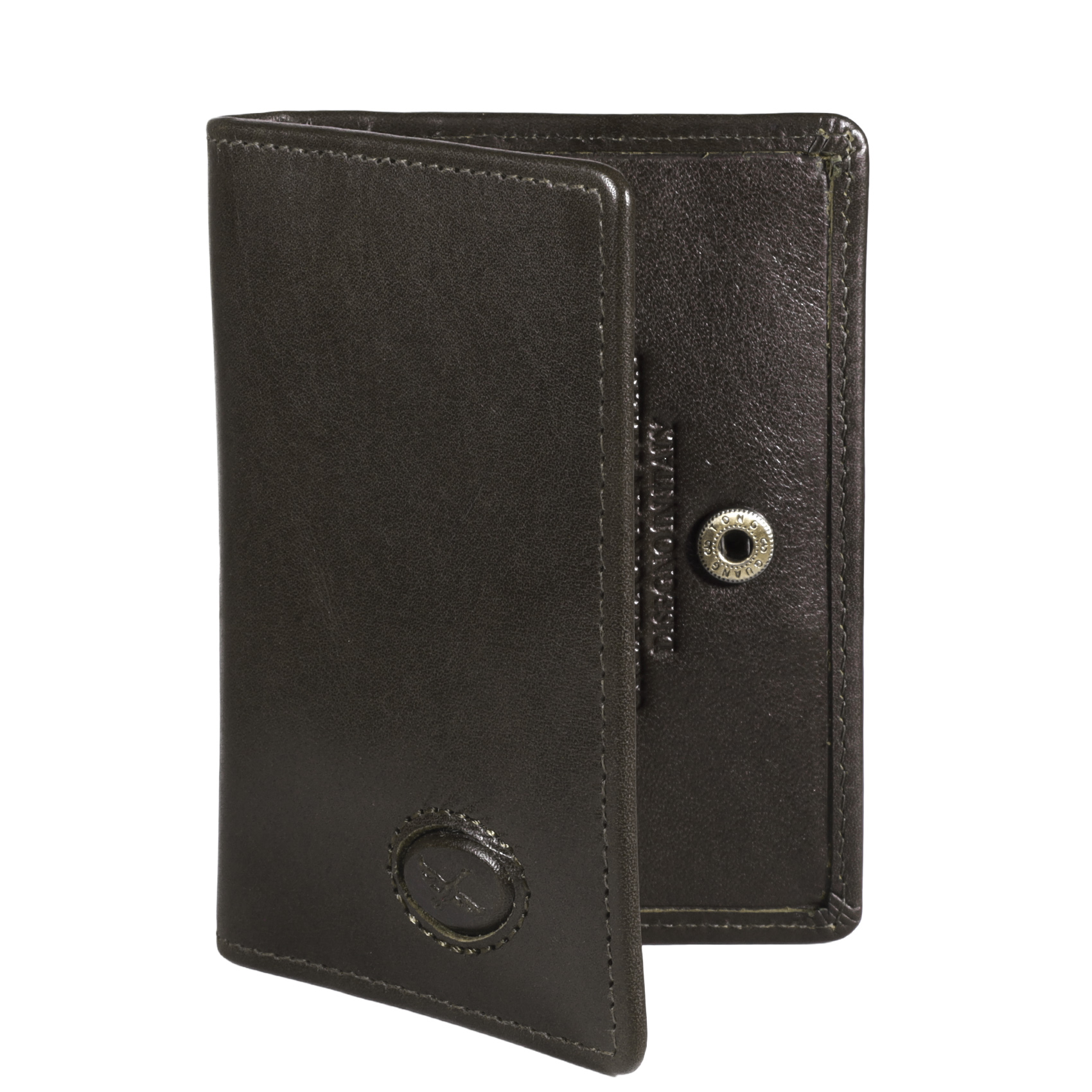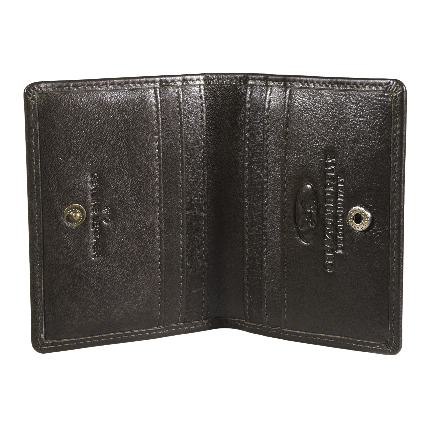 TARJETERO DE CUERO CON 6 COMPARTIMENTOS PARA TARJETAS Y BROCHE A PRESIÓN
