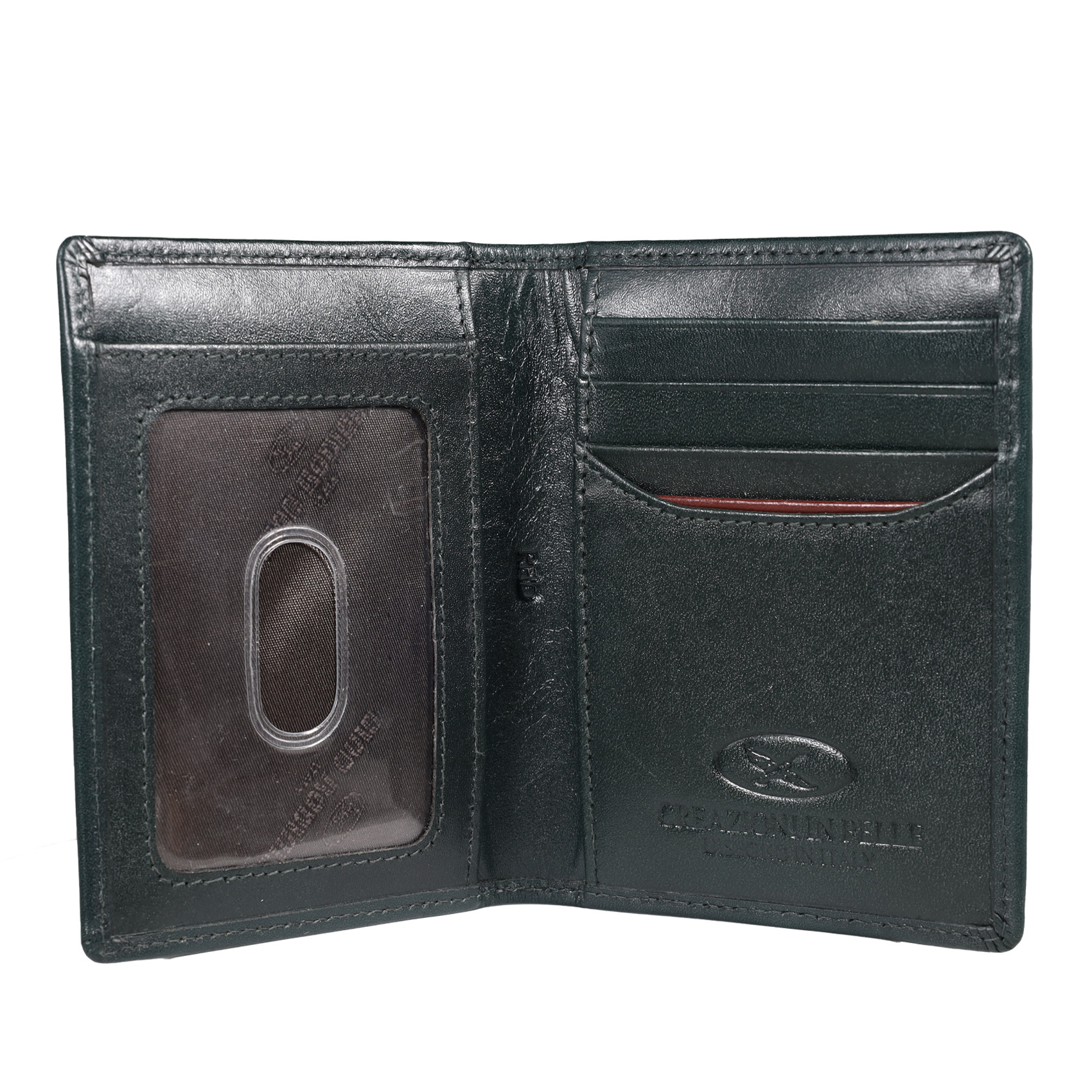 TARJETERO DE CUERO VERTICAL CON 4 COMPARTIMIENTOS PARA TARJETAS, MÁS UN BOLSILLO PORTA FOTO.