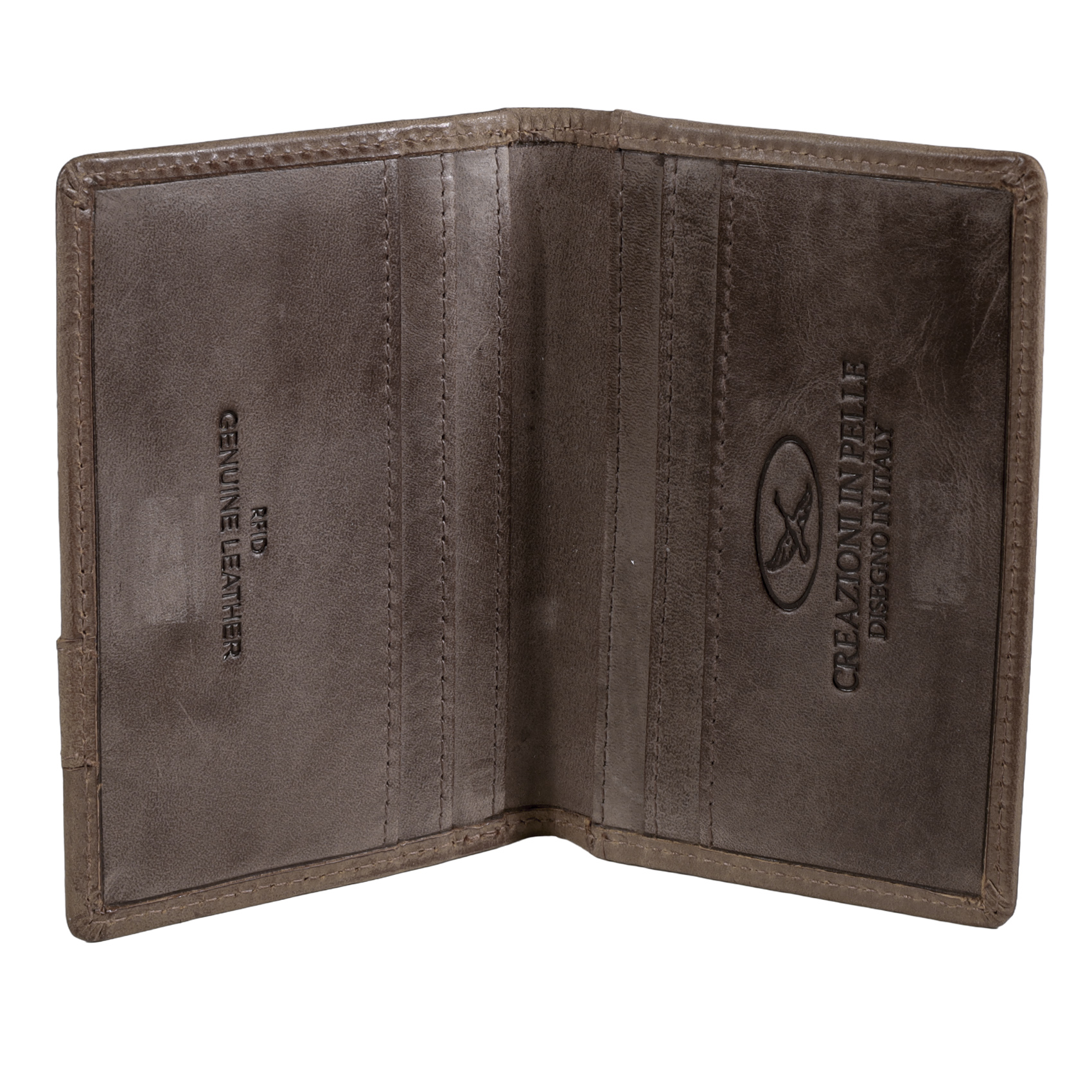 - Tarjetero confeccionado 100% en cuero graso, con bordes pulidos.